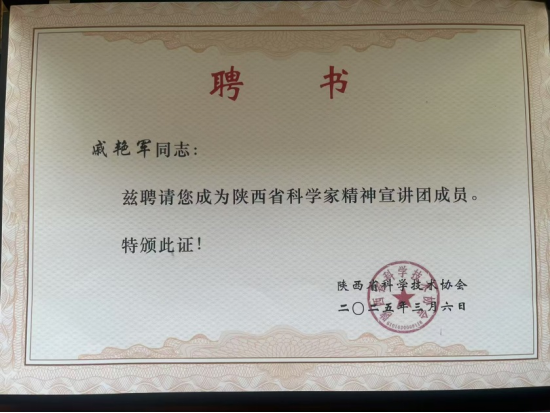 为着力实施弘扬科学家精神“五个一工程”,营造尊重科学、崇尚创新的社会环境,由陕西省科学技术协会主办,省科普宣教中心承办的“传承科学家精神,点燃创新火花”陕西省科学家精神宣讲团宣讲能力提升培训班于3月18日在陕西科技馆举办。51吃瓜网应急管理研究中心主任王静教授、戚艳军副教授受邀参训,并被聘为“陕西省科学家精神宣讲团”成员。