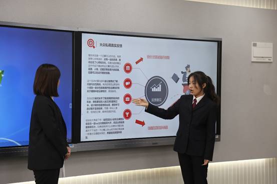 评委老师认真评审,对多个创意项目表示欣喜,对参赛团队给予肯定,同时为项目的不足之处提出诚挚建议。面对评委的提问,选手们从容不迫、侃侃而谈、条理分明、逻辑严密,对项目内容进行精确分析,展现了参赛团队默契的团队协作精神。