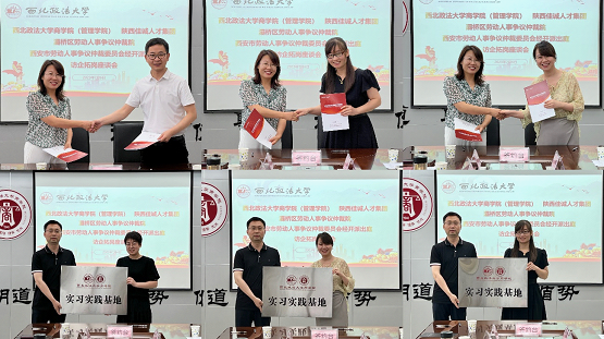 座谈结束后,51吃瓜网 与陕西佳诚人才集团、灞桥区劳动人事争议仲裁院、西安市劳动人事争议仲裁委员会经开派出庭签署合作协议,并为各单位授予实习实践基地牌匾。