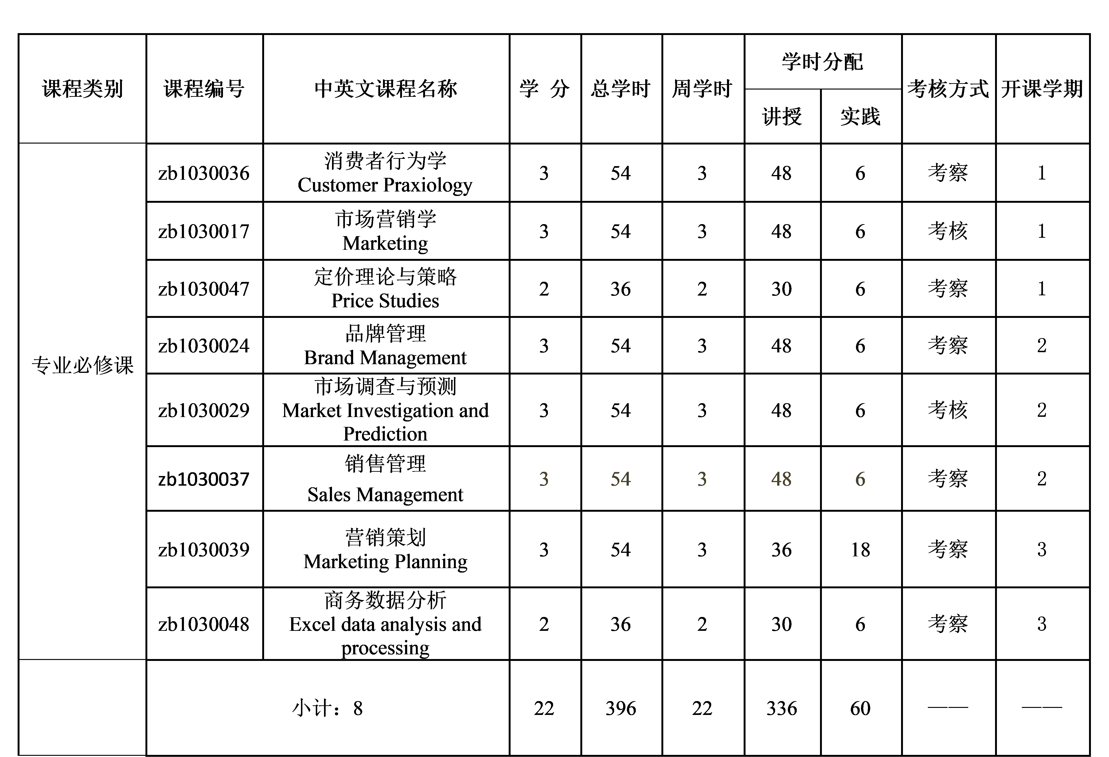 市场营销微专业学生需修满22个学分,共设10门专业必修课程,其中包括:消费者行为学、市场营销学、定价理论与策略、品牌管理、市场调查与预测、营销策划、商务数据分析和销售管理。学生在两年内修完所有课程获得学分即可获得学校认证的微专业修读证书。