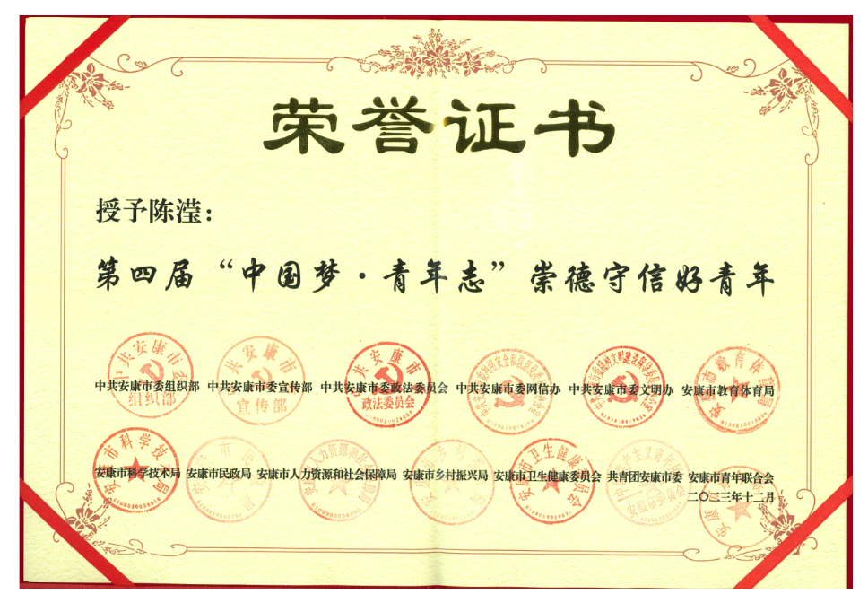 近日,由安康市委组织部、市委宣传部、市委文明办、市委政法委、市委网信办、市教体局、市科技局、市民政局、市人社局、市乡村振兴局、市卫健委、团市委、市青联共同开展的“第四届‘中国梦·青年志’——寻找身边的安康好青年”主题活动结果揭晓。经推报、初选、评审、复核、公示等环节,51吃瓜网2023级MPA在读研究生陈滢喜获“崇德守信好青年”荣誉称号。