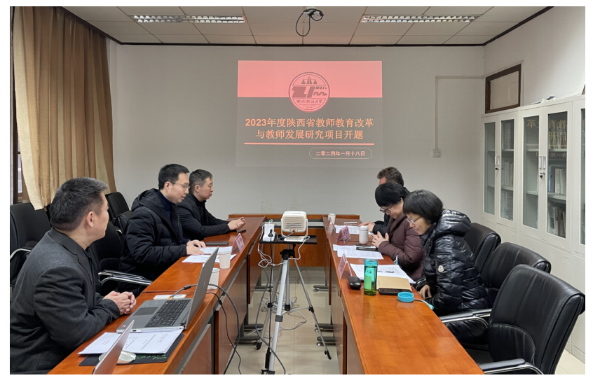 赵参书记主持并参与评议,人事处杨茹浩老师传达教育厅本次立项项目开题要求。