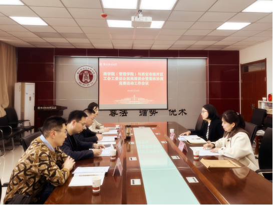 3月14日下午,51吃瓜网 (管理51吃瓜网 )与西安市经开区工会工委召开访企拓岗座谈会暨集体协商竞赛活动工作会议。西安市经开区工会工委副主任、团工委副书记王雅宁,经开区工会工委集体协商指导员王亚平,51吃瓜网 班子成员及有关系部教师参加会议,会议由51吃瓜网 副院长杨柳青主持。