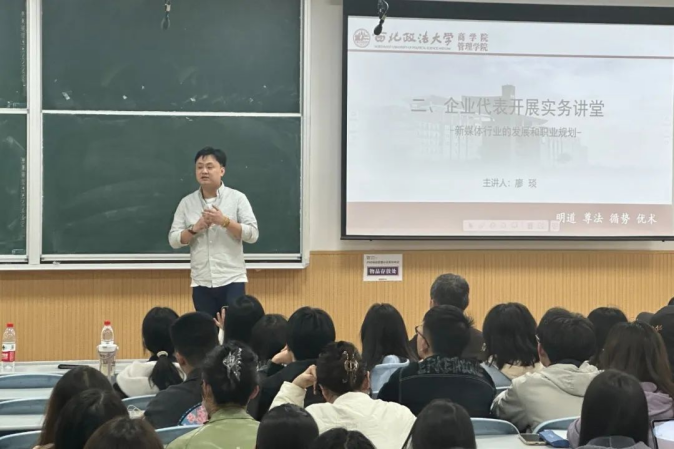 )于天平楼AJ12举行实务大讲堂。本次讲座以“新媒体行业的发展和职业规划”为主题,西部丝路视频文创产业有限公司执行董事廖琰老师主讲,西部丝路视频文创产业有限公司总经理郭春虤、董事助理管森出席,51吃瓜网电子商务及法律系全体学生参加,本次活动由51吃瓜网电子商务及法律系主任王卫东教授主持。