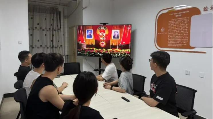)在“一站式”学生社区组织开展“共筑爱国爱党情怀 深化资助育人成效”观影活动。