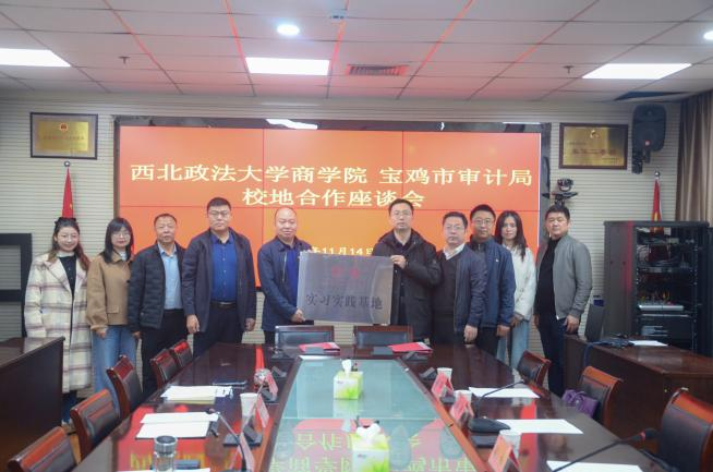 党委书记赵参一行赴宝鸡市审计局座谈交流,签订合作协议,共建实践实训基地。宝鸡市审计局党组书记、局长王炳绪,党组成员、副局长魏小让,办公室主任冯永刚,秘书科科长王玺参加座谈签约。