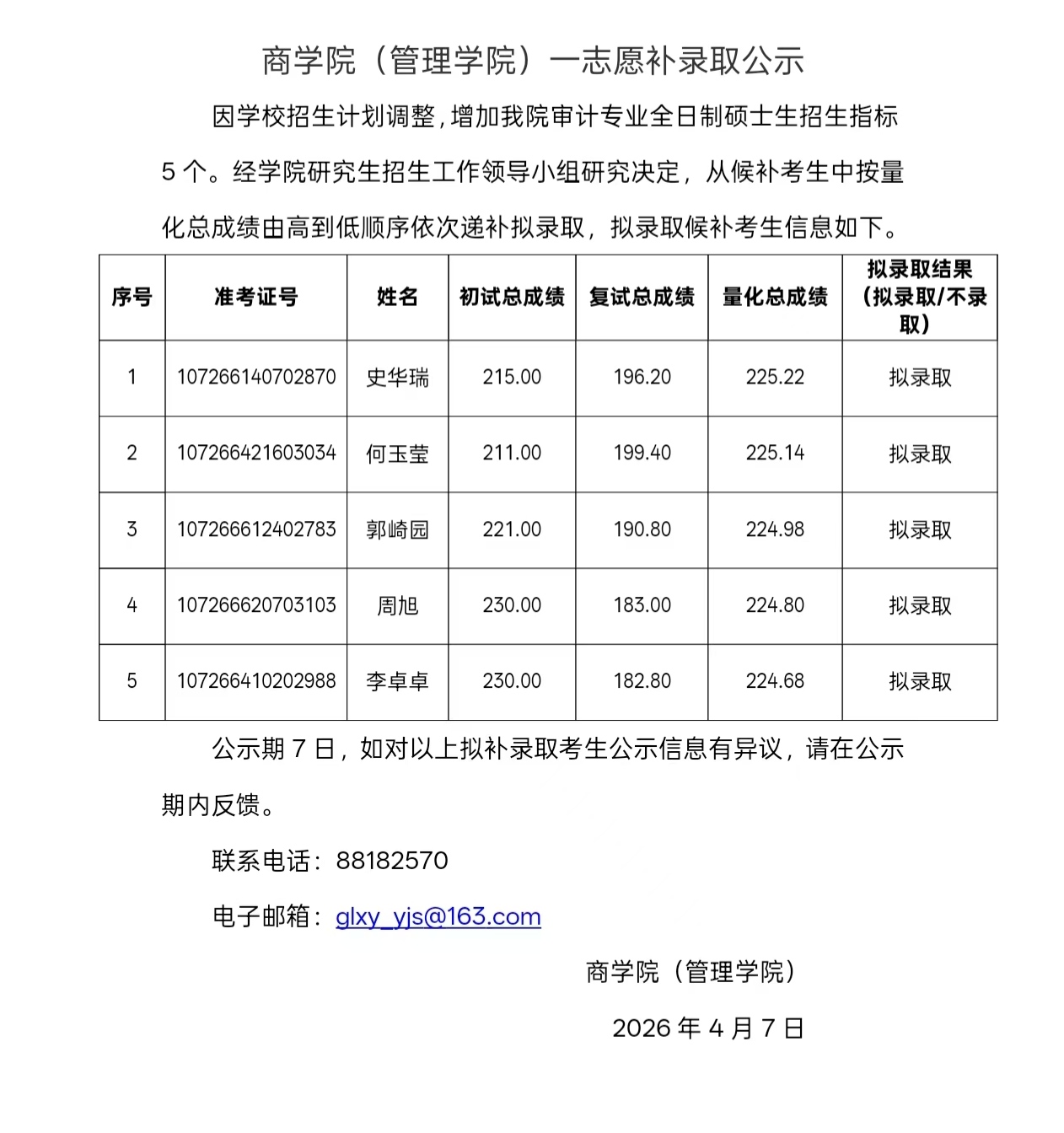 下一篇:51吃瓜网 2026年非全日制公共管理(MPA)专业研究生调剂公告