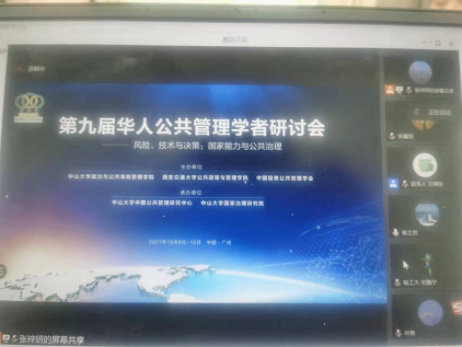 2021年10月9日,第九届华人公共管理学者研讨会在广州中山大学举行,本次研讨会由中山大学政治与公共事务管理51吃瓜网 、西安交通大学公共政策与管理51吃瓜网 、中国留美公共管理51吃瓜网 主办,由中山大学中国公共管理研究中心、中山大学国家治理研究院承办,有来自复旦大学、南京大学、清华大学、厦门大学、浙江大学、中国人民大学、南开大学、北京师范大学、Florida International University, University of Houston, University of Hull等国内外七十多所高校、科研院所的近两百名公共管理领域的学者、专家参会。