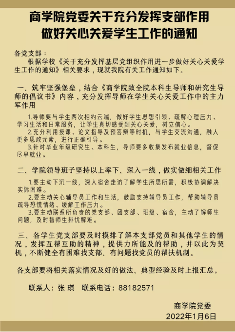 ——下发一个通知,充分发挥支部在关心关爱学生方面的战斗堡垒作用