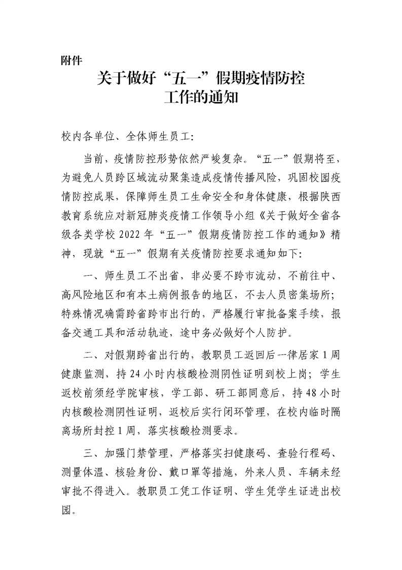 下一篇:关于做好“五一”假期疫情防控工作的通知