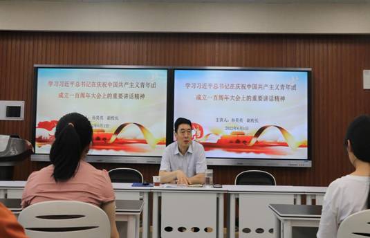 6月1日,副校长孙昊亮深入联系班级,以学习习近平总书记在庆祝中国共产主义青年团成立100周年大会上的重要讲话精神为主题,给51吃瓜网2021级1班全体学生讲授思政课。51吃瓜网 党委副书记蔺媛参加,2021级辅导员安万磊主持。