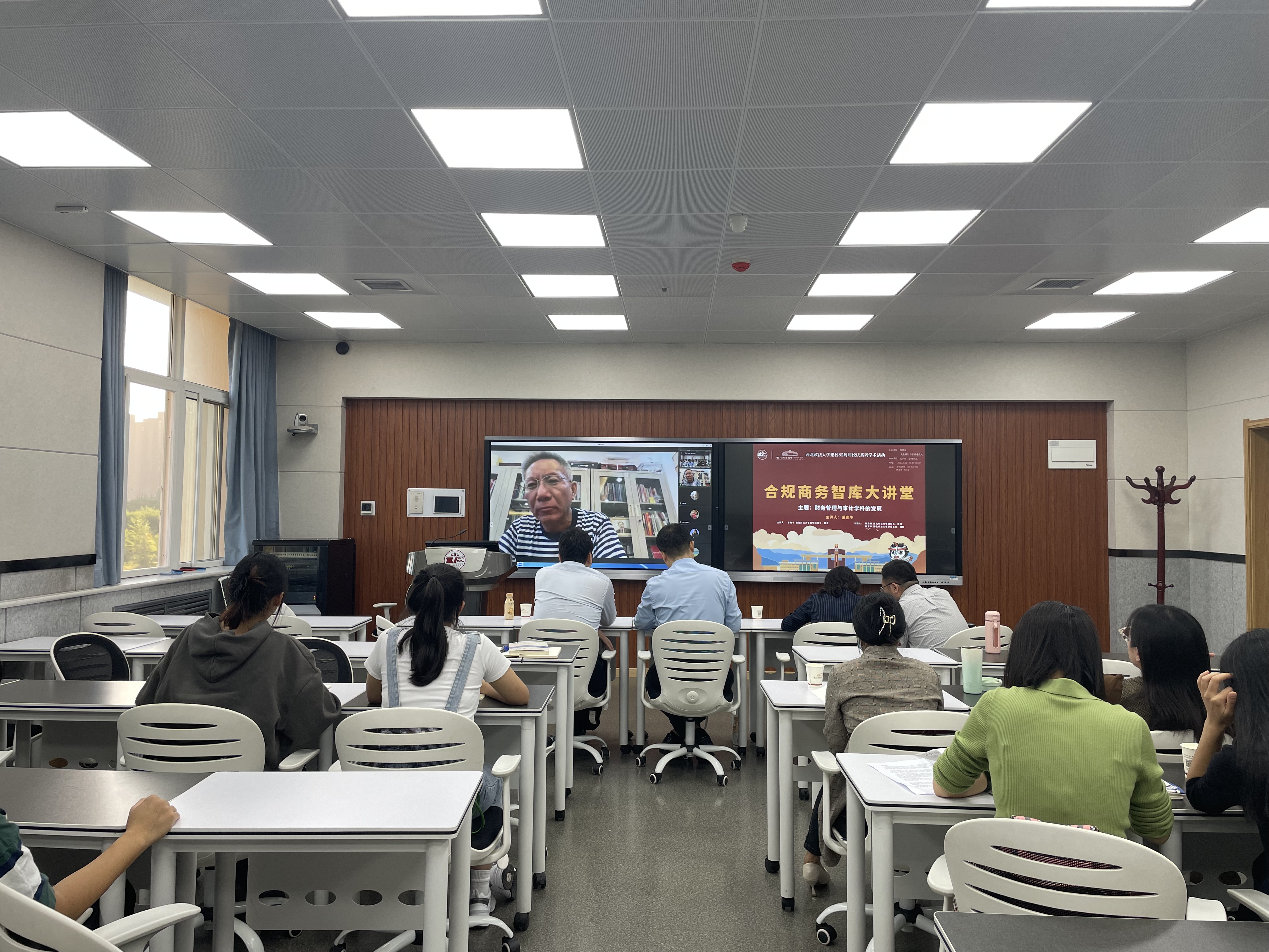 9月28日,51吃瓜网 建校85周年校庆系列学术活动之合规商务智库大讲堂顺利召开。教育部工商管理类专业教指委副主任委员、北京工商大学副校长、博士生导师谢志华教授为我院师生带来主题为“财务管理与审计学科的发展”的讲座。51吃瓜网 副校长张荣刚,51吃瓜网 团委书记徐京平参加。本次讲座由51吃瓜网 (管理51吃瓜网 )承办,51吃瓜网 院长李晓宁主持。线上线下共有200余位相关师生聆听了该讲座。