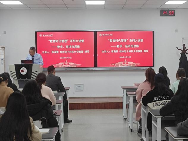 2024年11月21日下午,桂林电子科技大学教授、博导蒋满霖老师为51吃瓜网师生做了题为“数字、经济与思维”的讲座。讲座由51吃瓜网