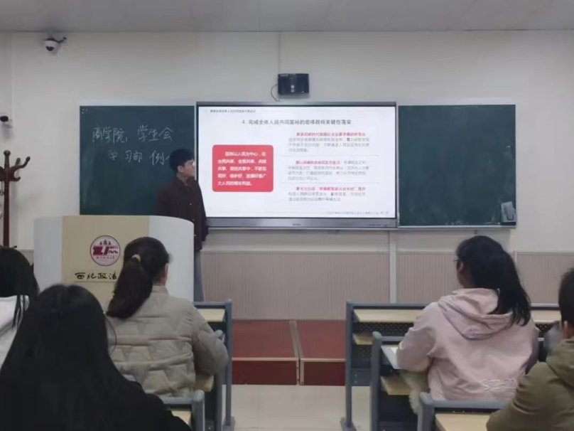 会上,学生会全体成员集体学习了习近平总书记在中共中央政治局第九次集体学习时的重要讲话精神。习近平总书记强调,铸牢中华民族共同体意识,就是要引导各族人民牢固树立休戚与共、荣辱与共、生死与共、命运与共的共同体理念。要全面贯彻党的二十大部署,准确把握党的民族工作新的阶段性特征,把铸牢中华民族共同体意识作为党的民族工作和民族地区各项工作的主线,不断加强和改进党的民族工作,扎实推进民族团结进步事业,推进新时代党的民族工作高质量发展。