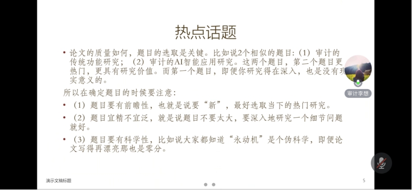 活动中,郝梦楠分享了毕业论文写作规范流程和注意事项,并对论文选题、数据搜集、信息查询等内容进行阐述,强调了在写作中保持严谨的重要性,鼓励同学们不断尝试新的研究方法,以取得更有深度的研究成果。李想从研究选题的角度为同学们分析如何在案例中找到研究的切入点,在科研最前沿的话题中以较小角度展开论述,使学术研究更具深度和广度。