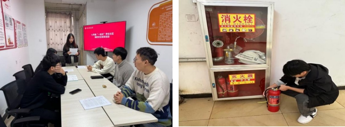 )在“一站式”学生社区召开消防安全培训活动会议。会议由7号楼站务委员会心理健康小组成员樊佳凝主持,研究生代表参加。