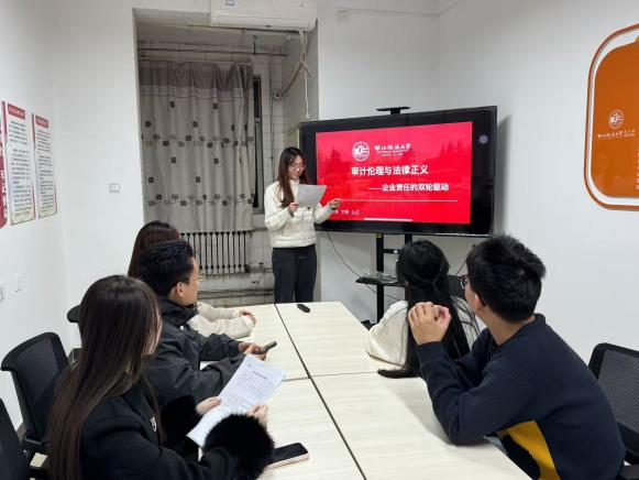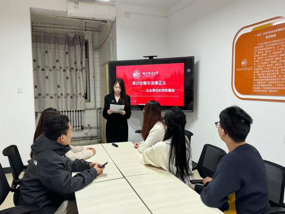 )“一站式”学生社区举办第50期“法商”沙龙活动,此次沙龙以“审计伦理与法律正义——企业责任的双轮驱动”为主题,由2022级研究生李笑迎担任主讲,2022级研究生张鹤千主持。