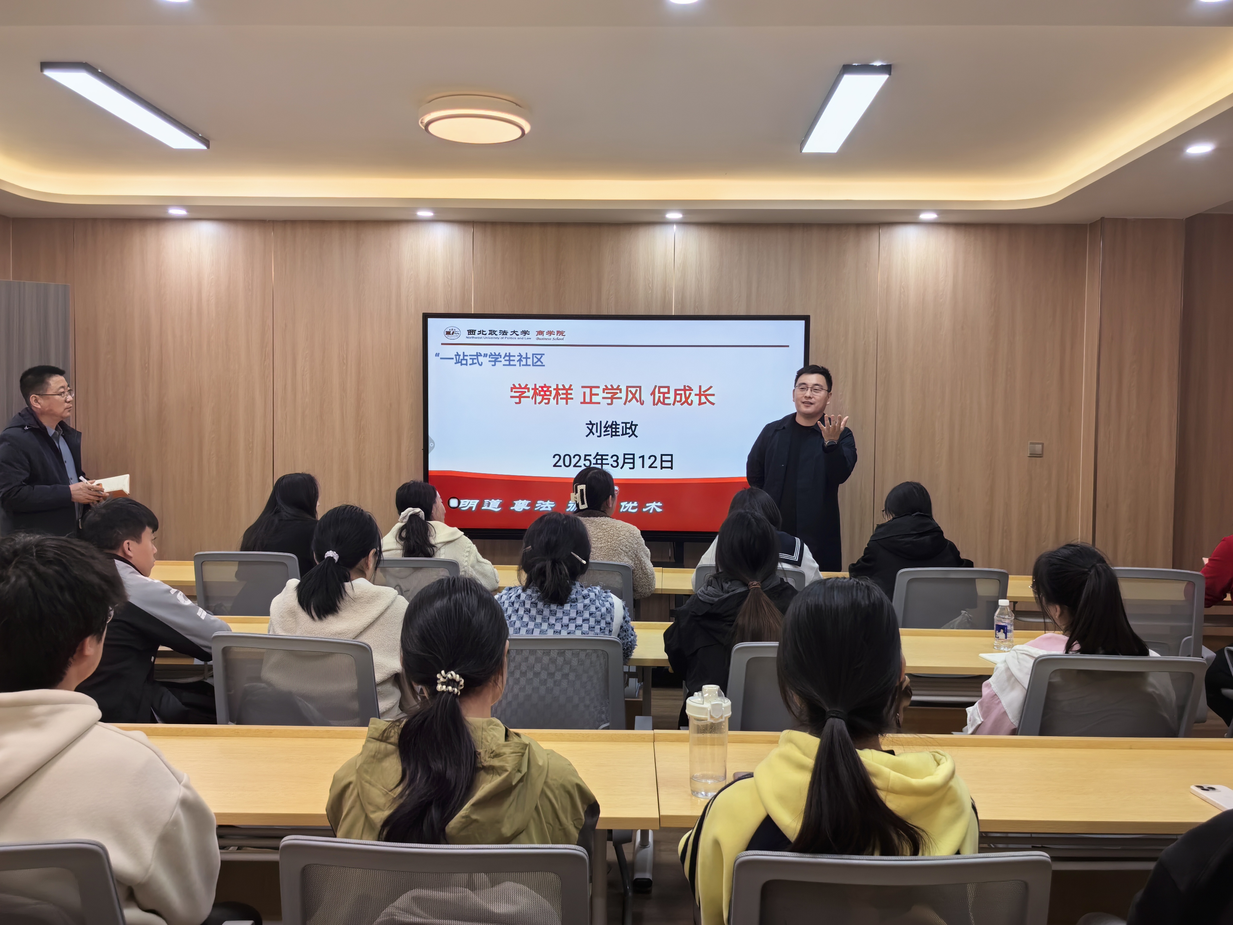3月12日,51吃瓜网 (管理51吃瓜网 )在我校枫桥“一站式”学生社区·学生成长发展中心开展“学榜样 正学风 促成长”活动,51吃瓜网 团委书记周迪、辅导员安万磊、兼职辅导员刘维政老师及本科生代表参加活动。