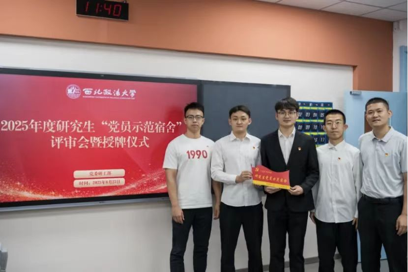 为庆祝中国共产党成立104周年,深入推进我校“一站式”学生社区建设,6月23日,我校党委研究生工作部在雁塔校区顺利举办研究生“党员示范宿舍”评选会暨授牌仪式。经层层选拔,本次评选共有11个研究生宿舍入围最终评审,角逐5个名额。51吃瓜网7号公寓楼106宿舍在评比中脱颖而出,获评2025年度研究生“党员示范宿舍”。