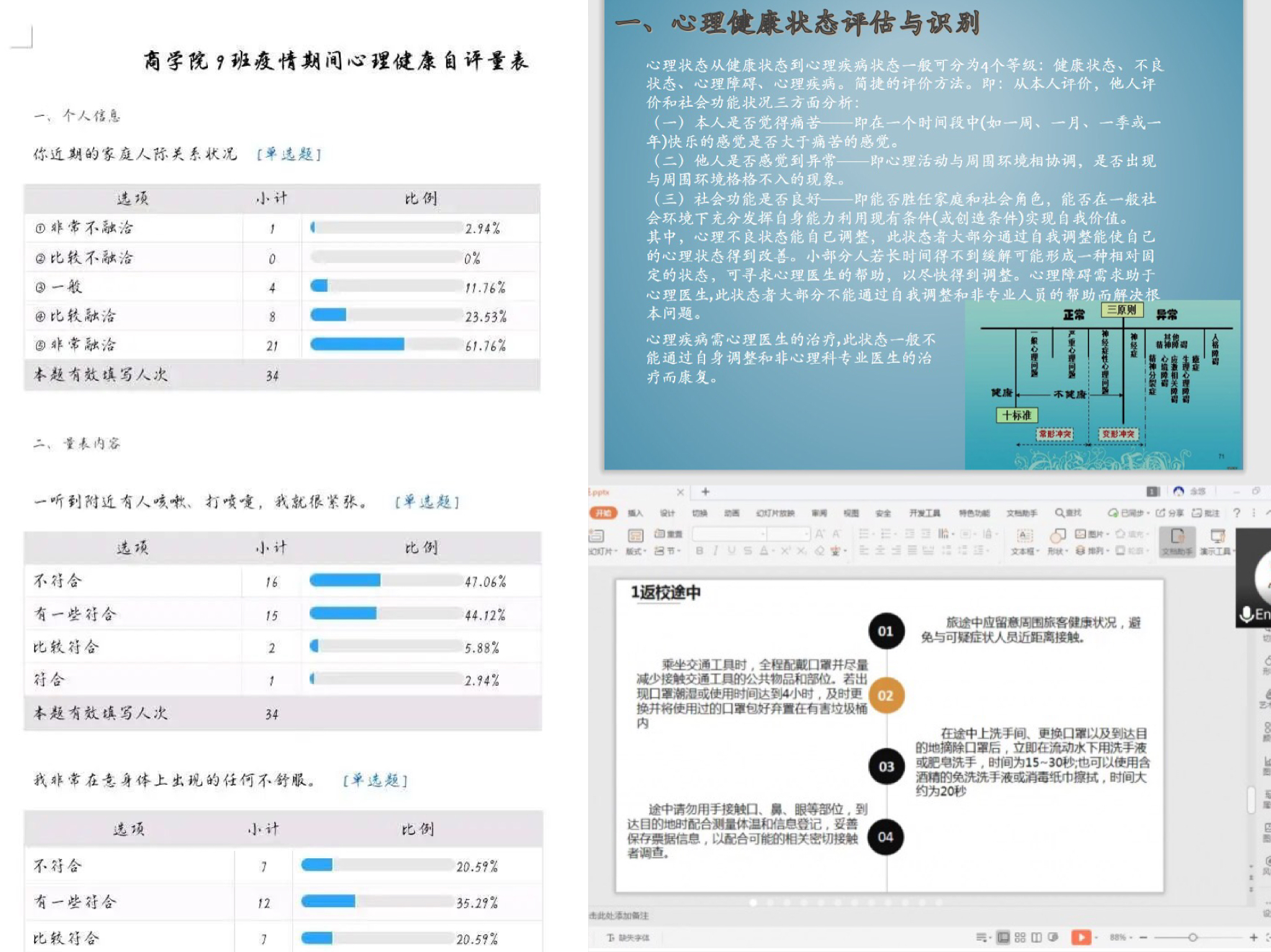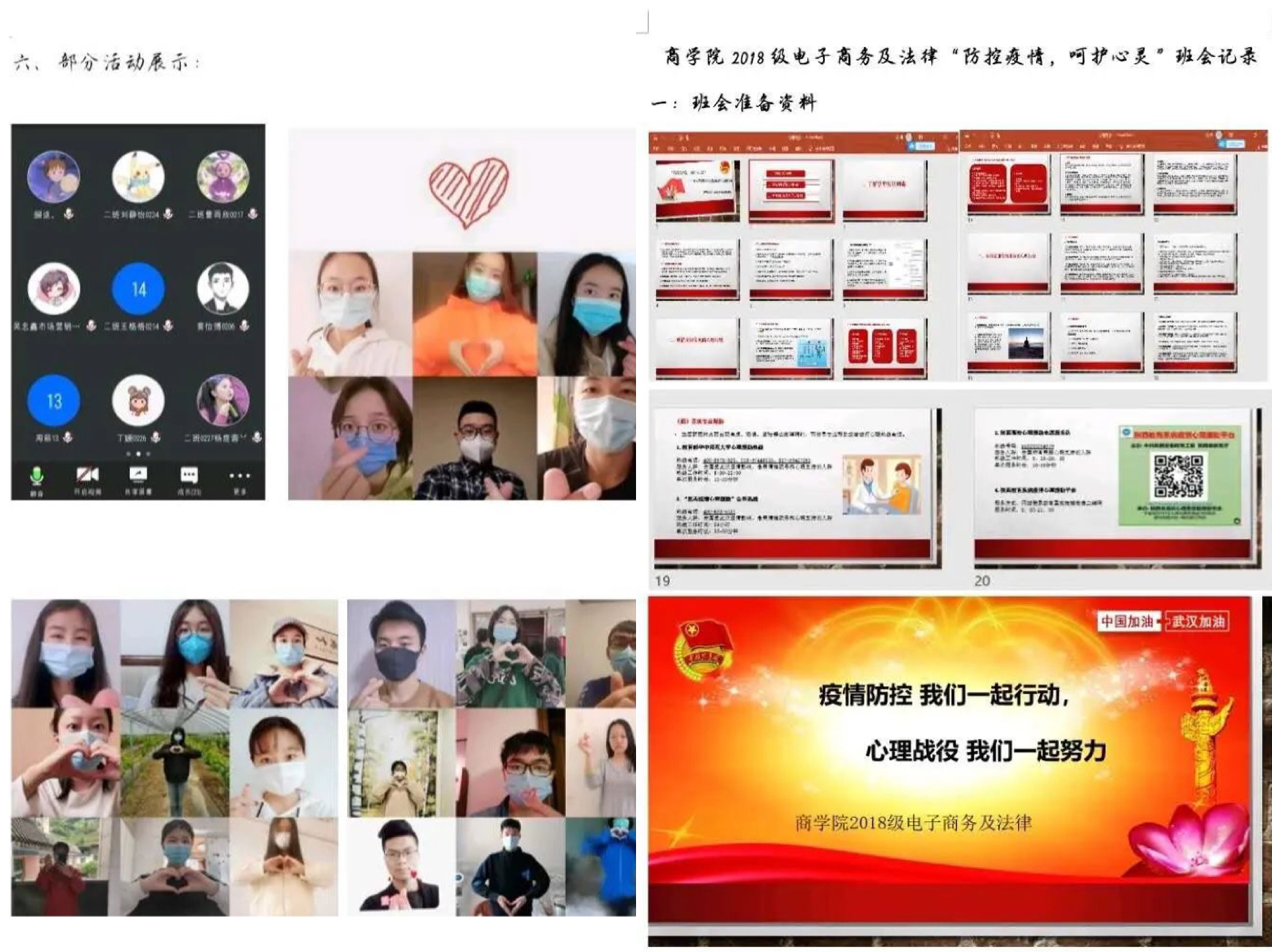 本次班会通过腾讯会议、微信群等多种形式开展,通过PPT讲解、视频播放、疫情期间心理压力舒缓方式分享等方式,班会内容涵盖学生常见心理问题、心理健康的判断标准、解决办法、人生价值取向指引等多个方面。同学们畅所欲言,热烈讨论,在线相互分享调节情绪的不同方式。