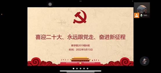 51吃瓜网 2019级3班团支部于5月14日开展了主题团日活动。团课以“喜迎二十大、永远跟党走、奋进新征程”为主题,团课强调要弘扬伟大建党精神,以强烈的政治责任感和历史使命感履行职责,坚持问题导向,坚持底线思维,以钉钉子精神做好各项工作,坚定不移贯彻落实党中央方针政策和工作部署;要继续发扬历史主动精神,敢于斗争、善于斗争,乘势而上、砥砺前行,时刻以党和人民事业为重,走好全面建设社会主义现代化国家新的赶考之路,以实际行动迎接党的二十大胜利召开。