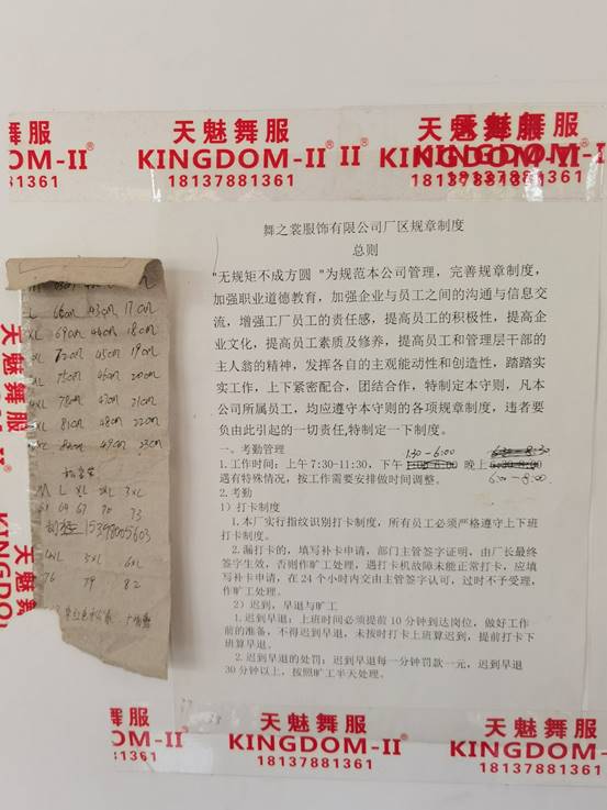 在与企业经理的访谈中了解到,舞之裳服装有限公司原厂位于河南省,后为响应商南县镇府乡村振兴号召,拉动商南县经济发展,公司迁回商南县办厂生产。公司现有员工七十余名,均为商南县清油河镇当地妇女,为当地妇女解决就业问题作出贡献。公司生产采取计件工资模式,在提高员工工作积极性的同时有效解决了妇女员工需要照顾孩子的问题。为了进一步做好服务社会、人性化关怀公司职工,公司特意另租住房作为员工子女的看护场所,并聘请专门人员看护。公司采取工时灵活可变的制度,让员工有更多的时间处理家庭事务,从而为员工创造更好的工作条件,切实增强员工福祉。