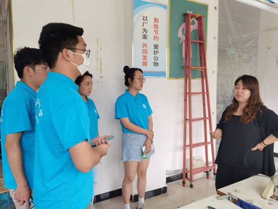 实践团队在舞之裳服装有限公司经理带领下参观了厂区建设和运营情况。