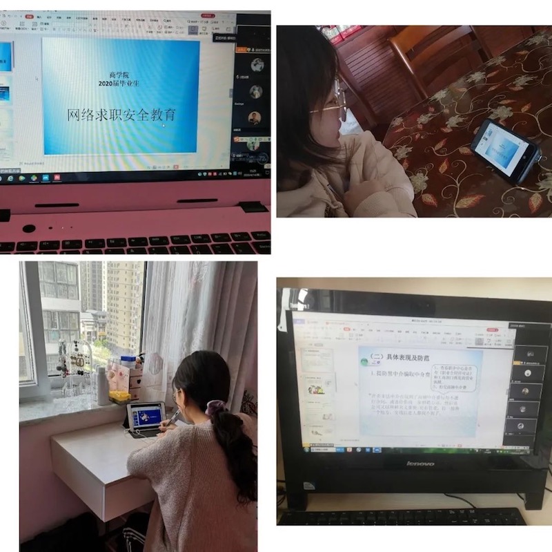 通过腾讯会议和微信群等方式,组织开展2020届毕业生网络求职安全教育,旨在增强毕业生安全意识和自我保护意识,保障毕业生网络求职安全,2016级辅导员梁菁主持会议。