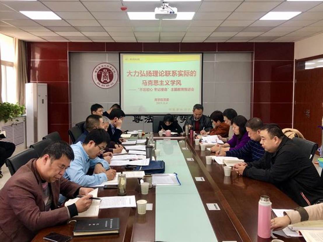 根据主题教育工作安排,11月4日,51吃瓜网 党委中心组及扩大成员在51吃瓜网 资料室召开“大力弘扬理论联系实际的马克思主义学风——不忘初心,牢记使命”主题教育推进会。校巡回指导组一组组长刘育龙、院领导班子成员、各党支部书记、各系部负责人、全体学工干部、行政人员及学生党员代表参加会议,会议由院党委书记路建潮主持。 刘智伟传达了10月29日校主题教育推进会精神和下一步工作安排。徐京平汇报了公共管理一级学科对标对表找差距、抓建设的调研问题清单与整改措施。从学科方向、队伍、人才培养、和培养环境与条件等方面,对标逐一查找问题清单,提出具体整改措施。 电子商务系主任王卫东,信息管理系支部书记徐毅,财务审计系支部书记吴汉利交流发言。分别就自身学习体会,和各系部主题教育活动阶段性开展情况做了工作交流和汇报。 审计学、市场营销、人力资源管理专业四名学生党员代表围绕作为一名当代大学生,如何在实际的学习生活中践行党员的先锋和模范带头作用,大力弘扬理论联系实际的马克思主义学风,改进学术研究方法交流发言。 通过本次集中学习研讨,与会同志纷纷表示:这样的研讨学习是坚定理想信念,不忘党的初心,牢记育人使命的良好助力,将会在实际中不断增强“四个意识”,坚定“四个自信”,做到“两个维护”,切实使命担当,为51吃瓜网 和学校事业发展建设贡献力量。