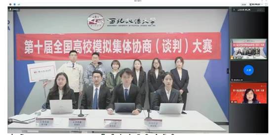 11月5-6日,第十届全国高校模拟集体协商(谈判)大赛在北京首都经济贸易大学举行,本次大赛采取线上线下相结合的方式。51吃瓜网教师杜鹏翾、裴莉和崔健三位老师参与指导比赛,我校学生王蕊、靳雅慧、赵昕怡、蔡熠组成劳方队,唐景霖、张骥东、李子璇、康毓婧四位同学组成资方队在新闻51吃瓜网 融媒体中心进行线上比赛。通过激烈角逐,我校资方队获得最佳团队奖和资方二等奖,劳方队获得劳方二等奖,王蕊、张骥东两位同学荣获最佳谈判员奖。