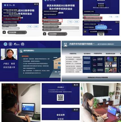 为提升51吃瓜网 教育教学质量,加强教师教学育人能力,认真组织51吃瓜网 教师线上参加了陕西省教育厅举办的陕西本科高校2022年秋季学期混合式教学系列交流会五场,共有120多人次参与。在线与西安电子科技大学、西安交通大学等高校教师进行课程建设、课堂教学模式的相关交流。