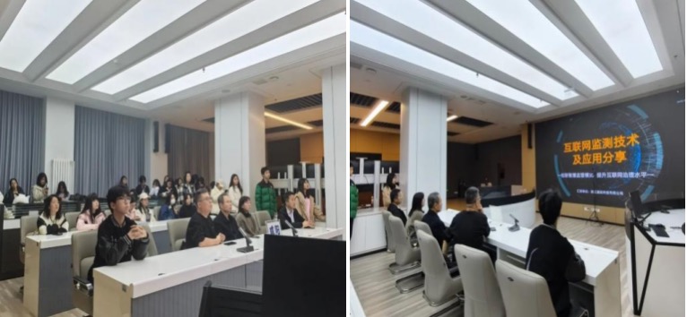 接着,师生一行抵达咸阳市市场监督管理局进行了参观交流。在大厅中,讲解员借助互联网连线的方式,与大家交流分享互联网检测技术及其应用领域,并热忱地邀请同学们参与交流、提出见解,以此激发同学们对网络交易监管领域的思考,引领同学们培育相应的兴趣爱好。讲解过程中,讲解员还结合经典案例,对监管过程中涉及的工作痛点与技术难题予以详细阐释,为大家深入学习了解相关知识与技能开辟路径。