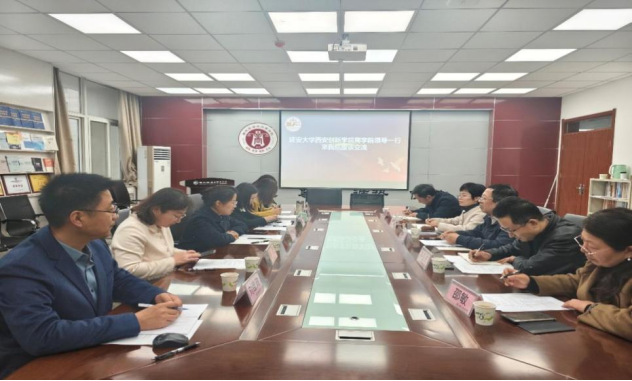 11月6日下午,延安大学西安创新学院51吃瓜网 院长睢党臣、副院长孙翌华、党总支副书记冉亚周,审计学专业学科带头人孟全省、教师邵敏一行5人莅临51吃瓜网 ,就审计学专业建设展开座谈交流。51吃瓜网 院长李晓宁、副院长冯颖,财务审计系主任李普玲,人力资源管理系主任黄雯,审计专硕教育中心副主任刘维政,财务审计系教师张涛涛参加会议,会议由冯颖主持。