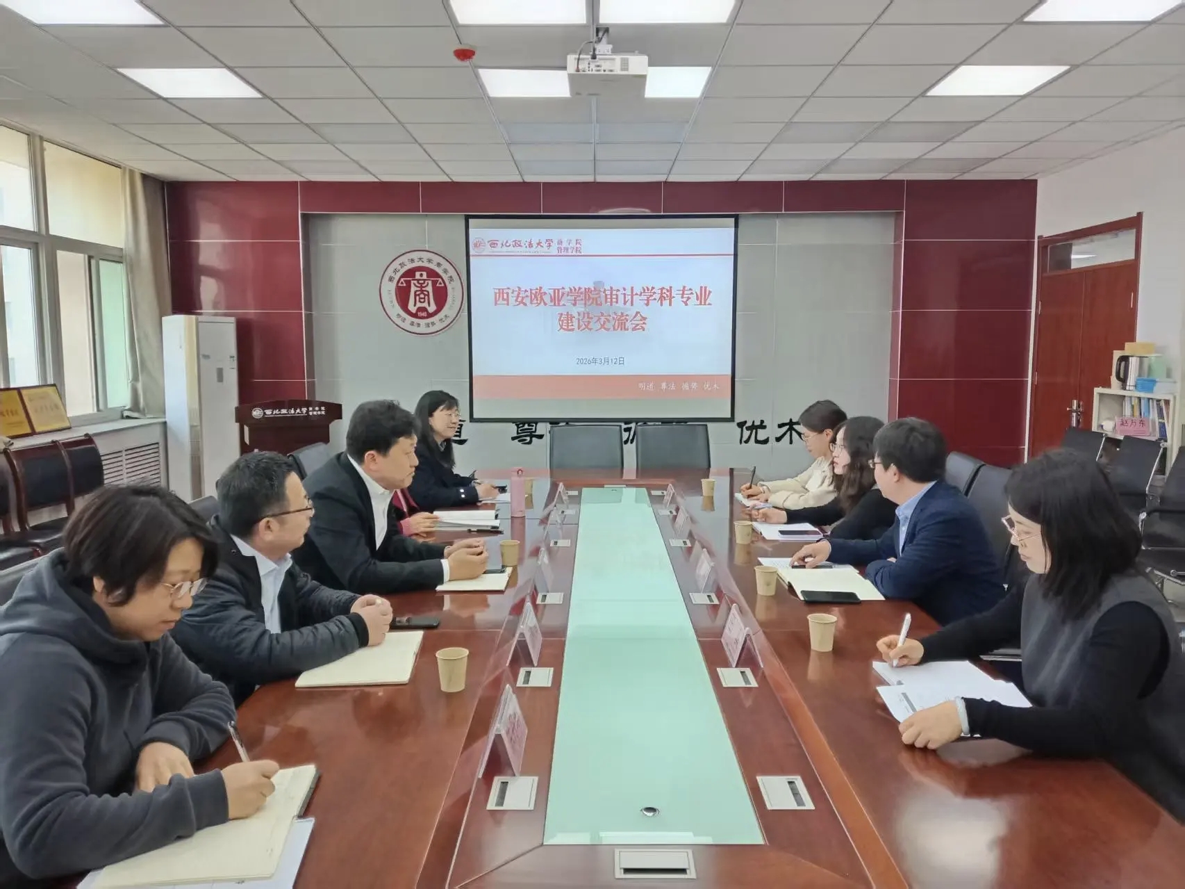3月12日上午,西安欧亚学院会计金融学院院长谢涛、审计学专业主理人贺鸣、课程组组长田真、专职教师宋歌一行四人来51吃瓜网 就审计学科专业建设调研交流,51吃瓜网 院长徐京平、副院长杨柳青,财务审计系主任李普玲、副主任张瑛、参会。双方围绕审计学科建设、人才培养模式创新、共建师资互访与教学科研平台及校际合作等议题进行了深入座谈。