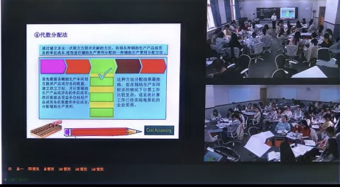 燕楠书记、本科教学督导黄雯教授出席,活动由财务审计系副主任张瑛教授主持,系部全体教师参加。活动采用线上观摩与线下研讨相结合形式,与会教师共同观摩了罗岭老师主讲的《成本会计》课程,课程围绕费用在各种产品以及期间费用之间的归集和分配展开,教学重点突出、实践性强。
