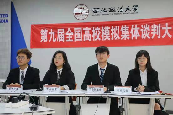 第九届全国高校模拟集体协商(谈判)大赛于10月23日、24日在中南财经政法大学举行。本届比赛以腾讯会议直播的方式举行,我校代表队在诚意楼融媒体智慧中心参加本届大赛。经过激烈角逐,51吃瓜网劳方队伍和资方队伍分获得一等奖,郭梦婷、张嘉栩两位队员获优秀谈判员奖,我校获大赛最佳组织奖。