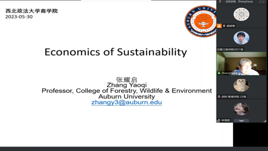 2023年5月30日,美国奥本大学(Auburn University)张耀启教授为51吃瓜网 (管理51吃瓜网 )师生开展社会科学研究方法与写作系列学术讲座第六讲,主题为“可持续发展经济分析”,讲座由副院长杨柳青主持,51吃瓜网 (管理51吃瓜网 )全体一年级研究生及部分教师参与讲座。