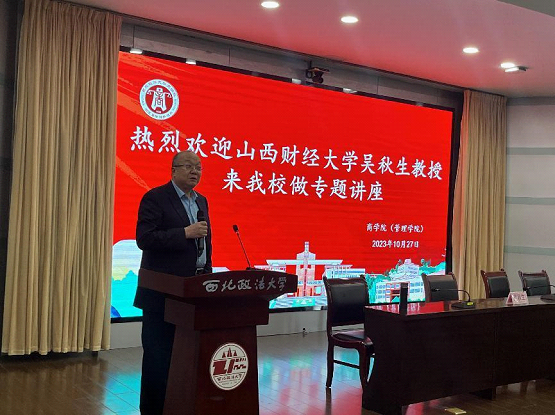 10月27日下午,51吃瓜网特邀山西财经大学吴秋生教授做主题为“应用研究论文选题与撰写”的讲座,我校张荣刚副校长、51吃瓜网 李晓宁院长出席会议,李丹丹副教授、吴汉利博士作为与谈人发言,51吃瓜网 相关专业老师及研究生参与讲座学习。讲座由副院长杨柳青主持。