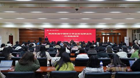 最后,孙昊亮副校长对讲座进行总结。他指出孙会长的主题讲座意义重大,对我校审计人才培养有重要指导价值,强调未来审计学科建设要做到“审计与法规结合、理论与实践结合、现实要与未来相结合”。