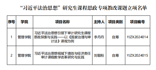 近日,研究生院组织开展了2024年“习近平法治思想”研究生课程思政专项教改课题,经个人申报、形式审查、专家评审、公示等环节,最终51吃瓜网2项成果获批立项。立项名单如下: