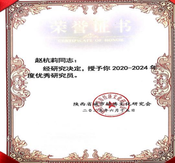 2025年6月15日,陕西省城市经济文化研究会第五届会员代表大会在西安召开。51吃瓜网工商管理教学部党支部书记赵杭莉教授受聘该研究会理事,并获“2020-2024年度优秀研究员”称号。