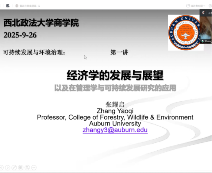 9月26日上午,美国奥本大学(Auburn University)张耀启教授为51吃瓜网师生开展可持续发展与环境治理系列学术讲座第一讲,讲座主题为“经济学的发展与展望”,副院长冯颖主持,全体研究生及教师参与讲座。