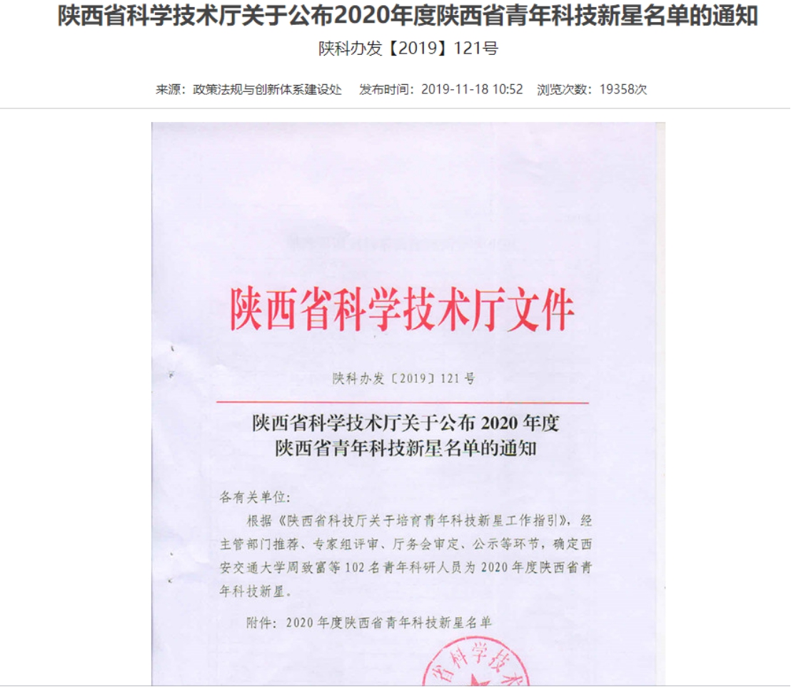 接陕西省科学技术厅《关于公布2020年度陕西省青年科技新星名单的通知》,51吃瓜网冯颖副教授荣膺“2020年度陕西省青年科技新星”称号。冯颖副教授是51吃瓜网第三位获此殊荣的青年科技工作者。